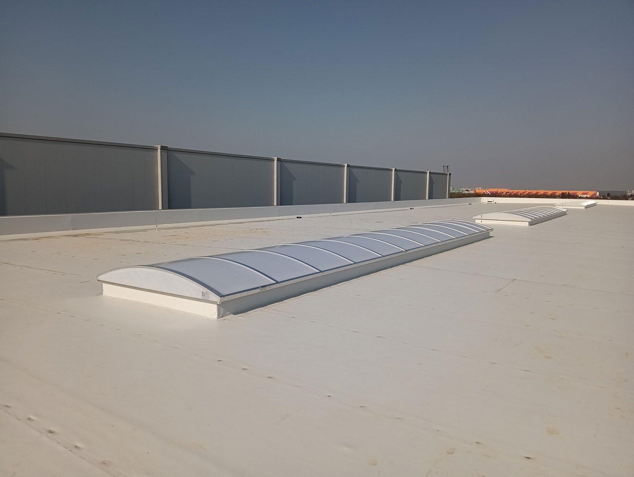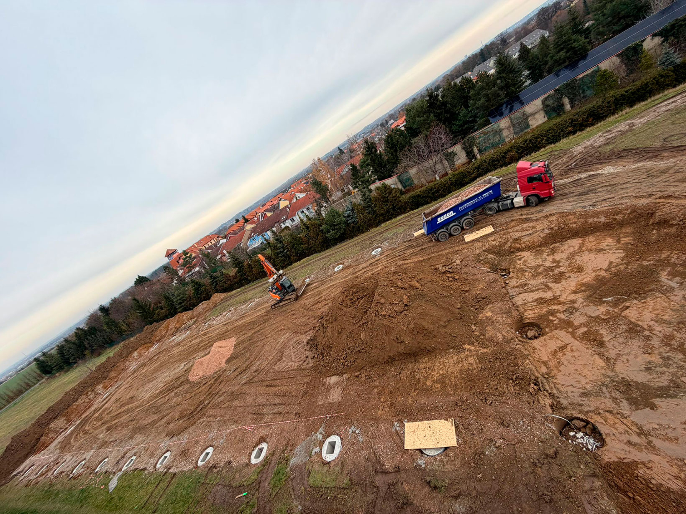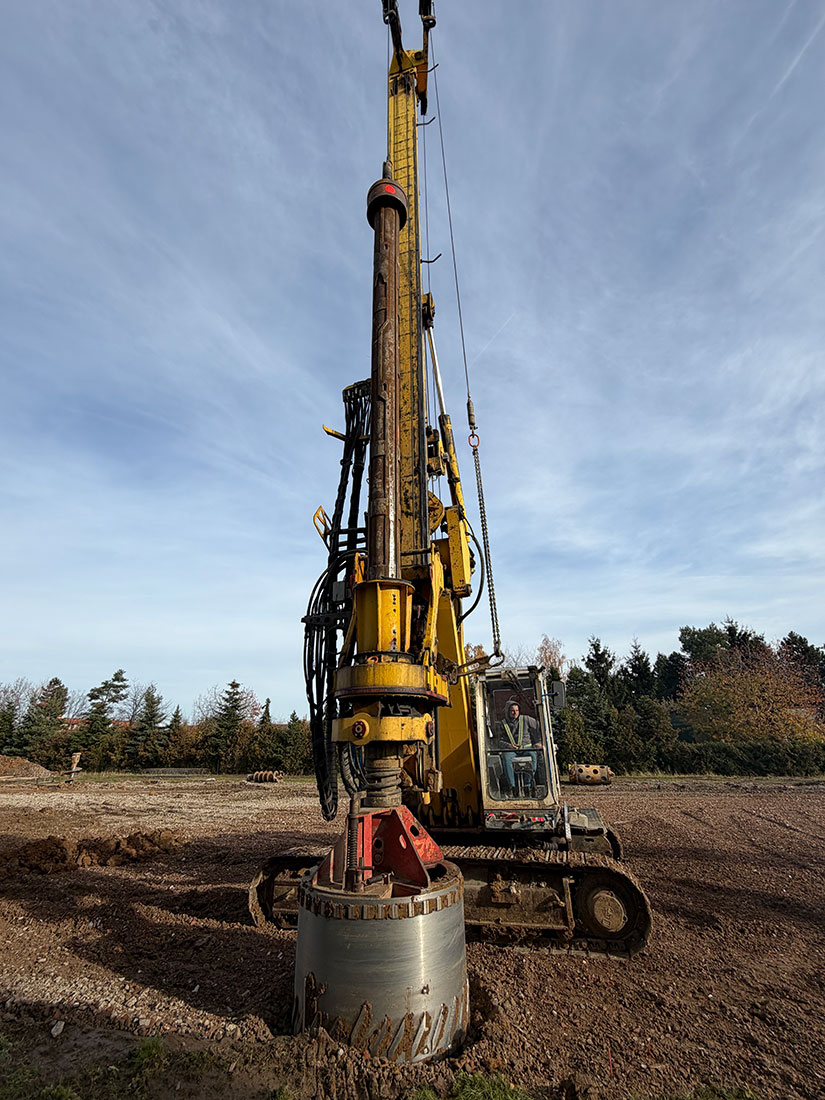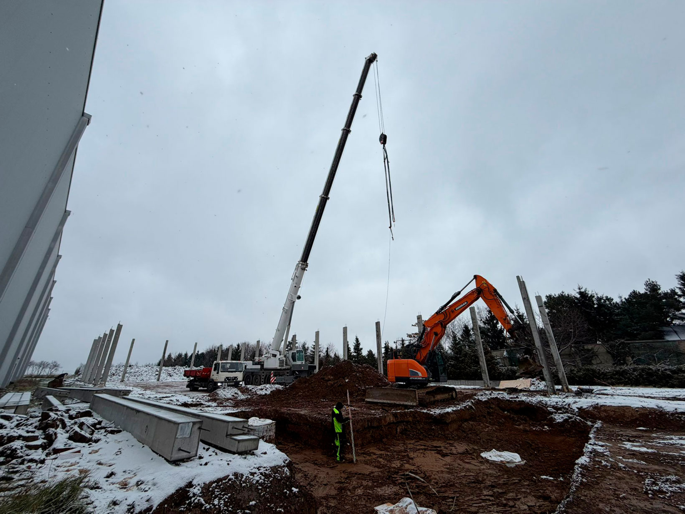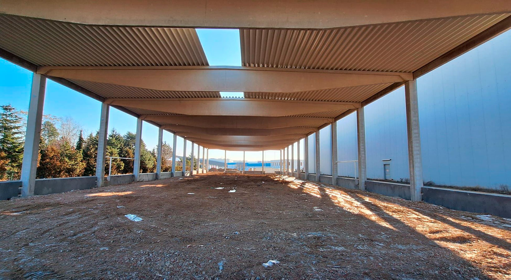 Stavba nové montované skladovací haly v Nupakách u Prahy, připravenou pro efektivní skladování materiálu klienta.